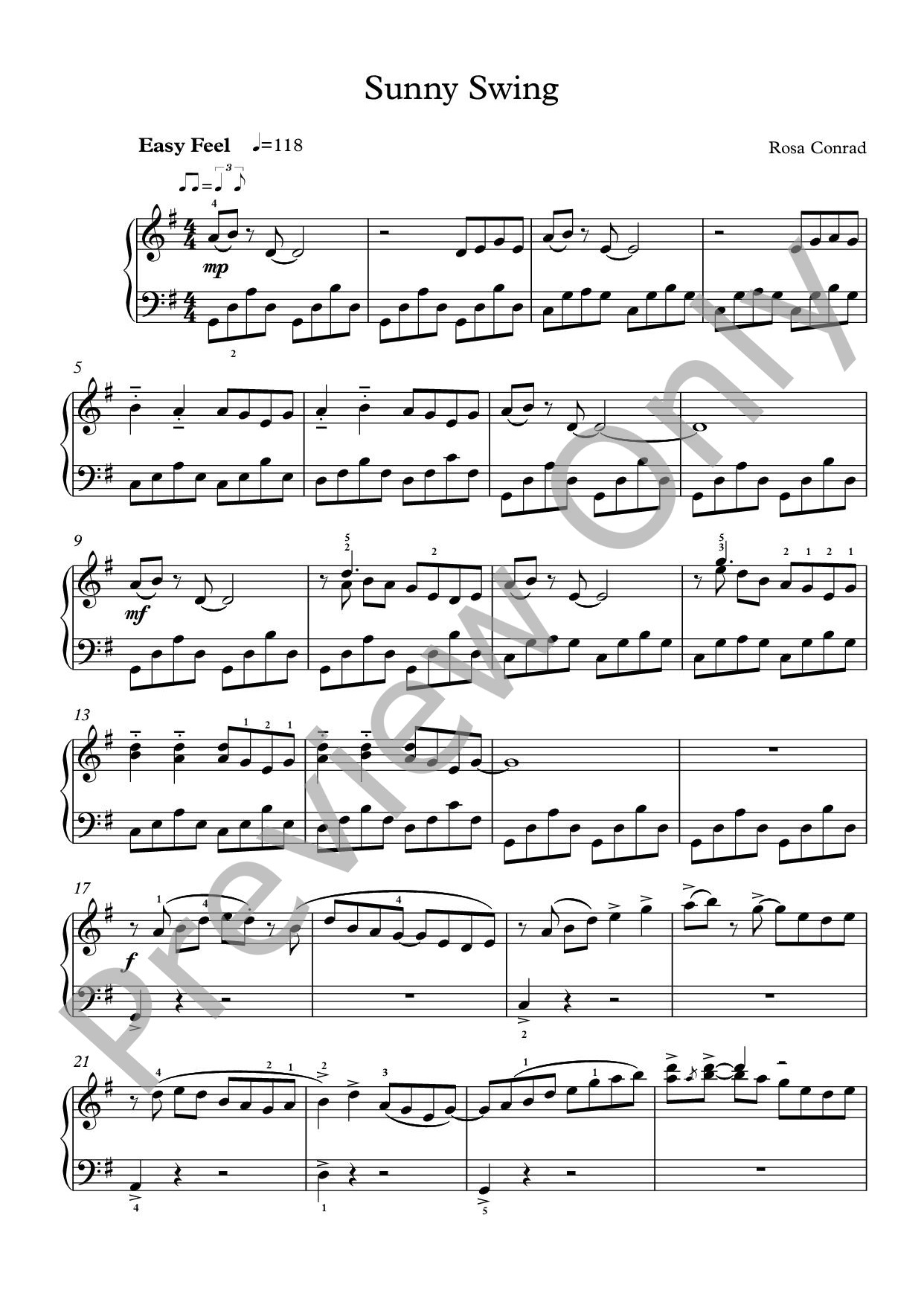 Sunny Swing is a mid/late intermediate piece for piano. It is the first of my Brand New Tunes. Launched February 2024 and free till the end of the month. After this another brand new tune will be launched, again free until the end of the month.